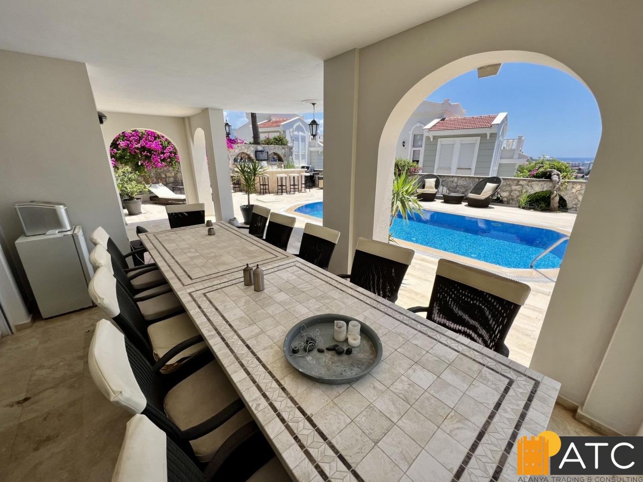 The villa has got 3 floors offering 4 bedrooms, 3 bathrooms, a guest toilet, living room with open kitchen, a covered terrace with pool on the ground floor and 2 balconies on the upper. The highlight of this villa is the large terrace and the balconies with views across the sea. Imagine an evening when you enjoy a good glass of Turkish wine or morning coffee on the sunrise.