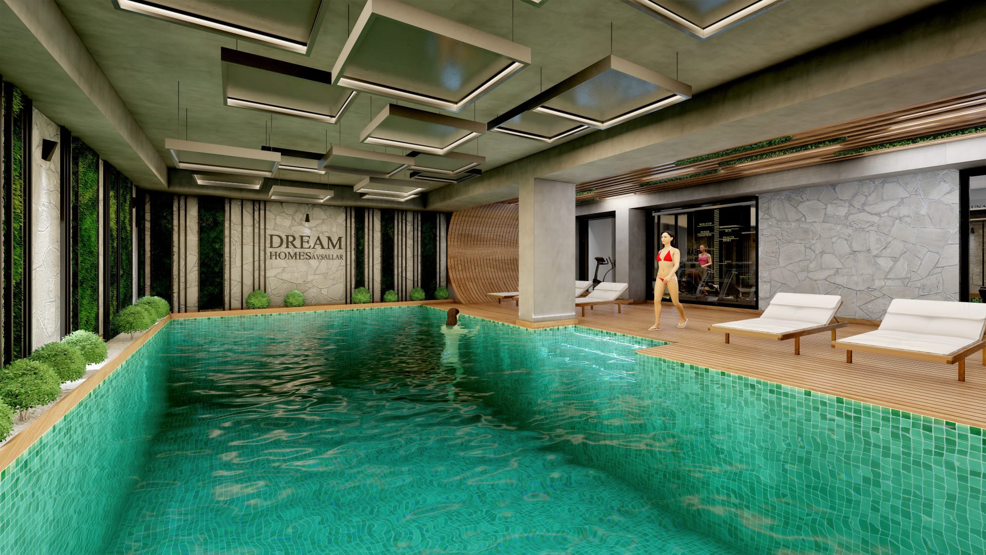 Um Ihren Komfort und Ihr Wohlbefinden zu gewährleisten, bietet der Wohnkomplex exklusive Einrichtungen wie einen Außen- und Innenpool, ein SPA-Zentrum, ein türkisches Bad, eine Sauna, ein Fitnesscenter, Minigolf, Tennis, Basketball, Volleyballplatz, Kinderspielplatz, Spielzimmer, Miniclub, Pergolen zum Entspannen, Hausmeisterservice, 24-Stunden-Sicherheitsdienst, Parkplatz, Generator und kostenloses WLAN.