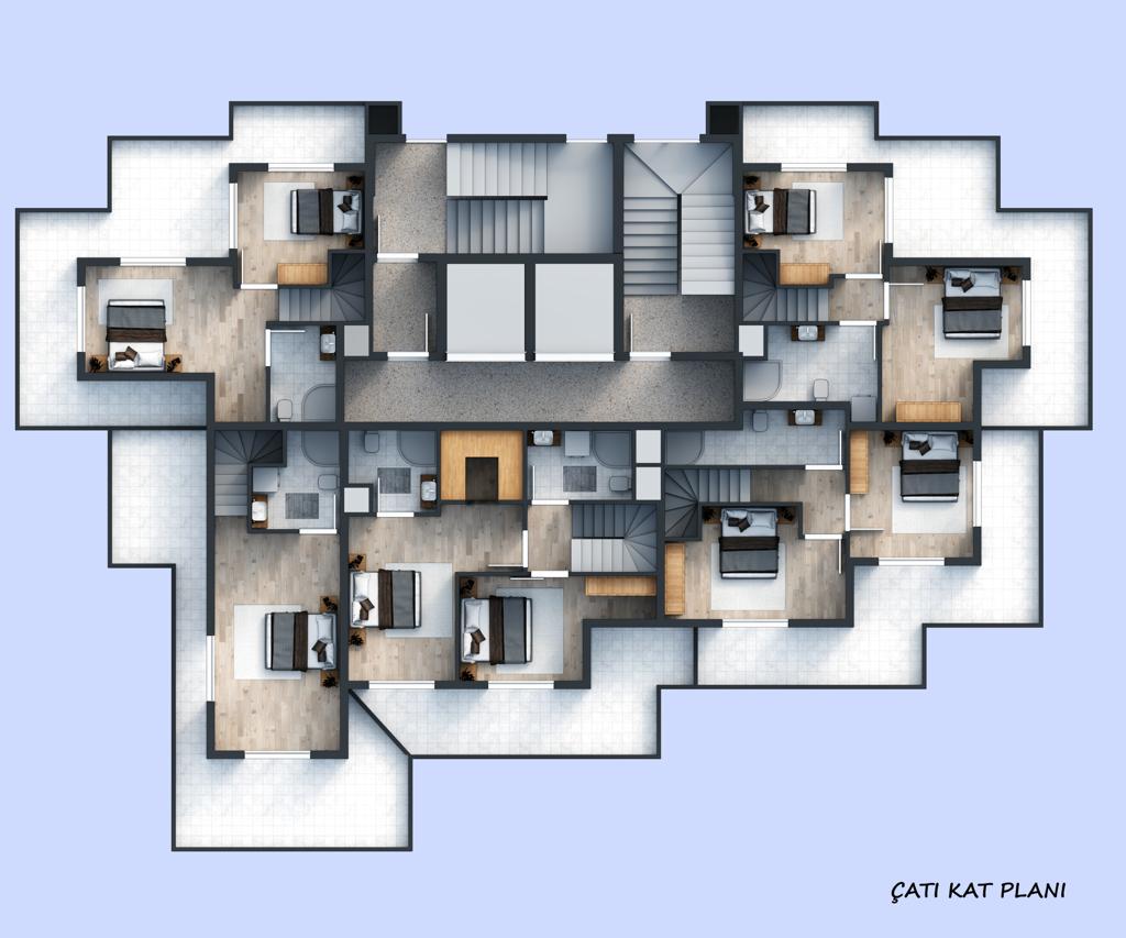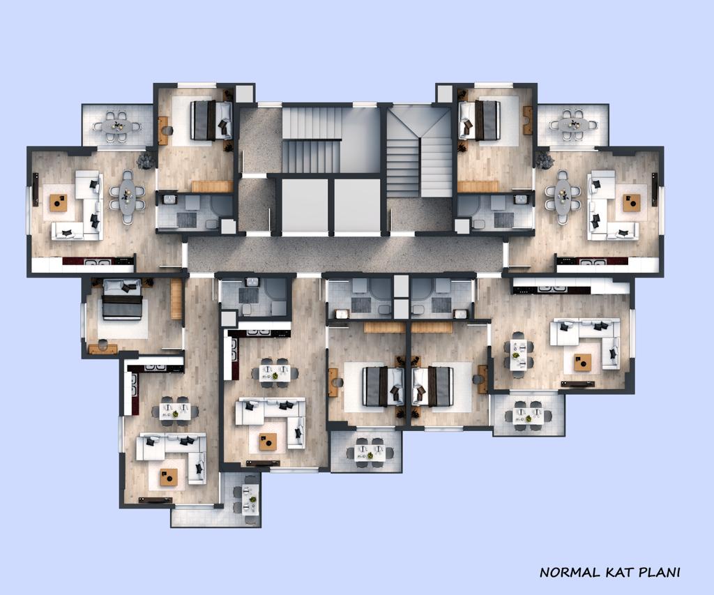 Die Residence besteht aus 2 Blöcken, 8 Etagen und insgesamt 80 Apartments. Die Wohnungen sind in 3 Typen unterteilt:
