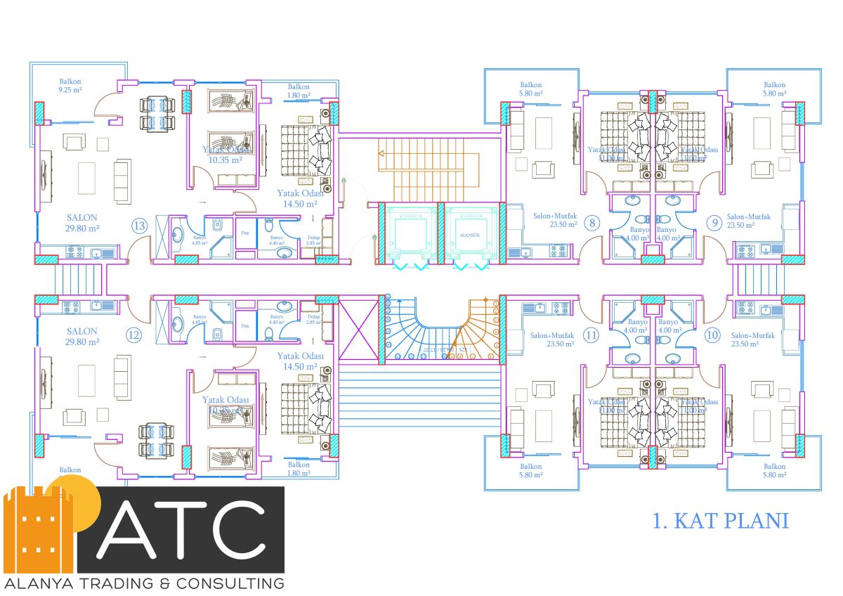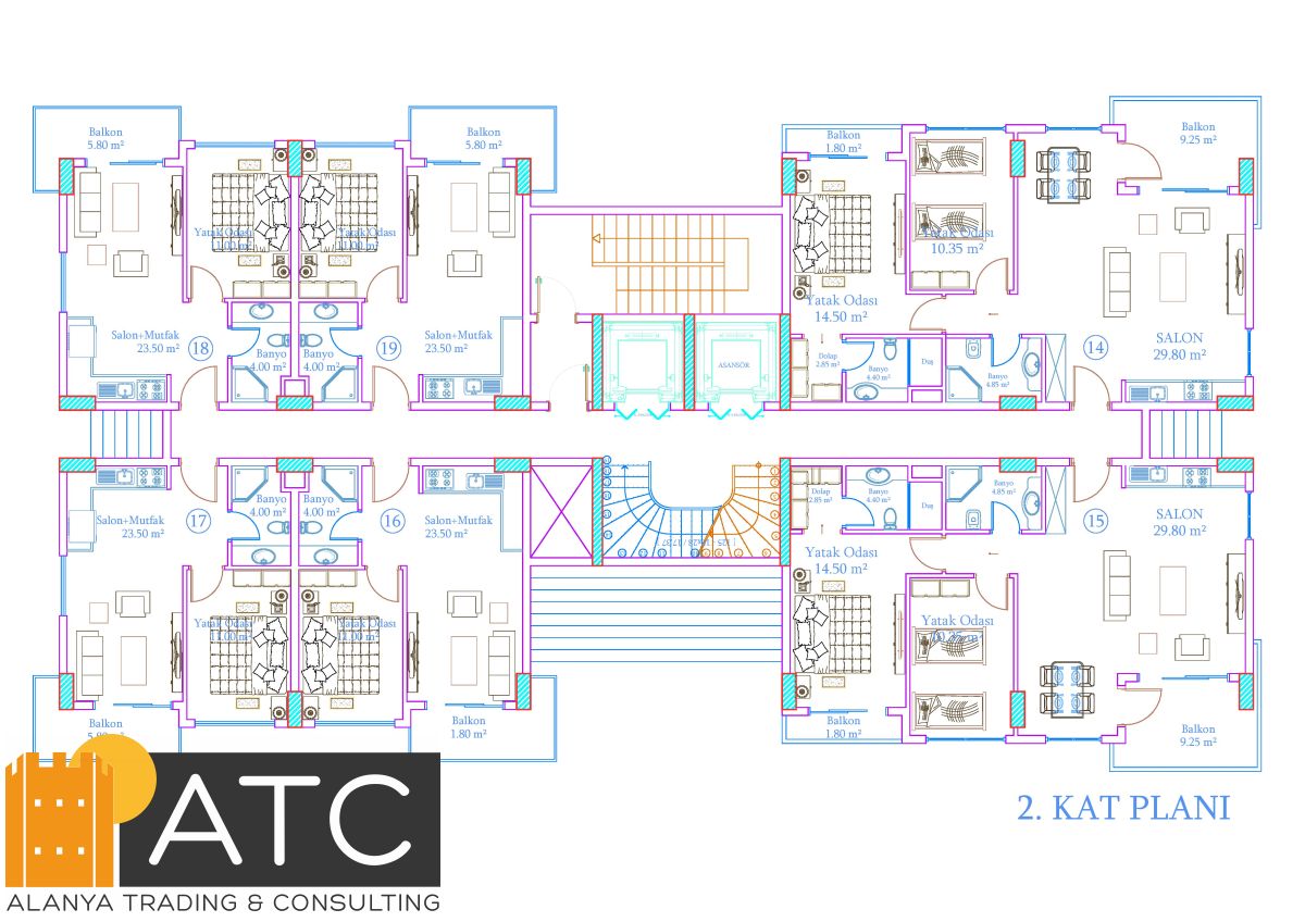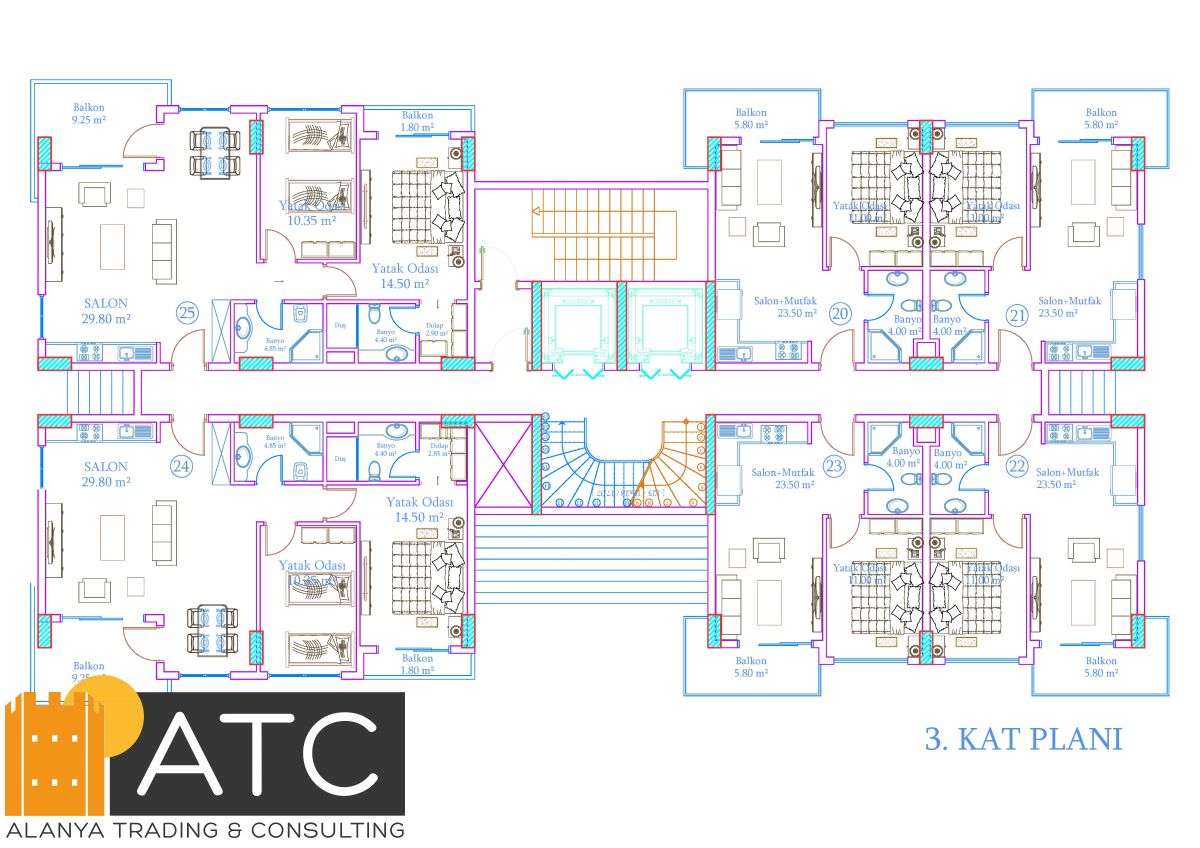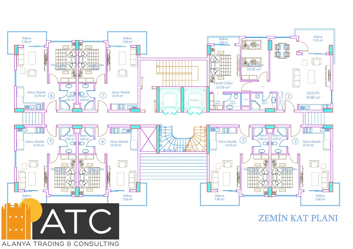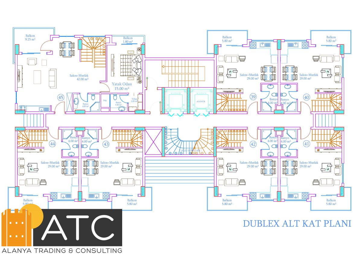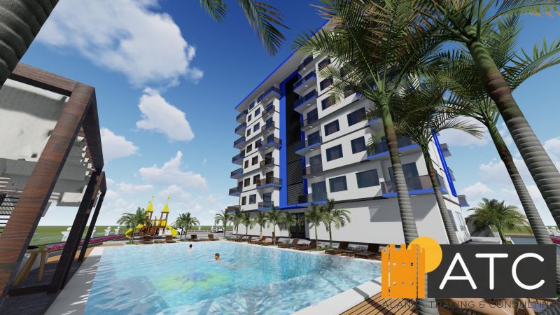 Zum Verkauf stehen insgesamt 32 Wohnungen mit zwei Zimmer und 7 Penthäuser (Dublex) mit 3 Zimmer. Im Juli 2022 wird mit dem Bau dieser kleinen Anlage begonnen - Fertigstellung und Übergabe ist Juli 2023. Der Strand, und der Ort Avsallar befinden sich in 1,7 km Enfernung.